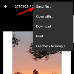 Then, tap the three dots in the upper right of the file that you want to send. In the drop down menu, tap on Send file…